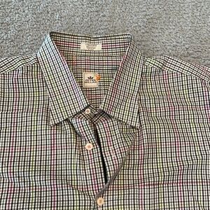 Peter Millar Shirt Mens Extra Large Black & pink green Check Long Sleeve Button