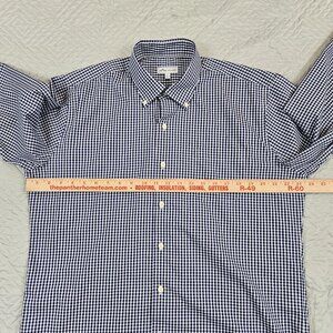 Up for sale here is a men's Peter Millar blue and white gingham check cotton/silk blend shirt. Size LARGE. Excellent pre-owned condition.