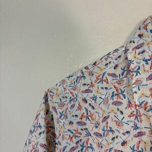 Peter Millar Shirt Mens Large Bug Print Short Sleeve Button Up Stretch Golf