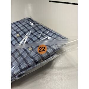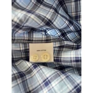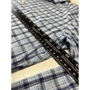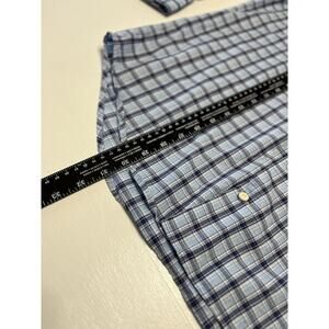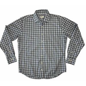 Peter Millar Shirt Mens Large Button Up Navy, White, Light Blue Plaid EUC Golf