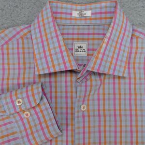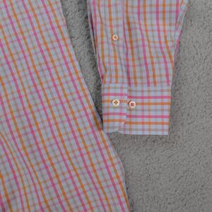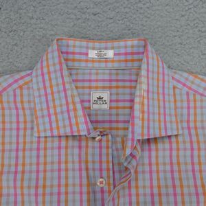 Peter Millar Shirt Mens Large Pink Orange Plaid Button Up Long Sleeve