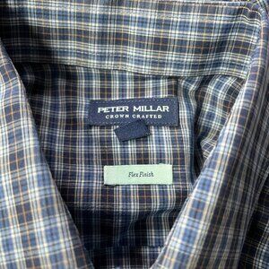 Peter Millar Shirt Mens M Long Sleeve Button Down Crown Crafted Blue Plaid Flex Finish