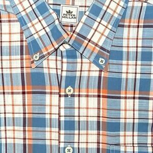 Elevate your wardrobe with this stylish Peter Millar shirt in size L. The shirt features a colorful, classic, and preppy striped pattern with a seaside wash that makes it perfect for all seasons. With a button-down collar and closure, this shirt is made of lightweight woven cotton fabric that is machine washable for easy care.