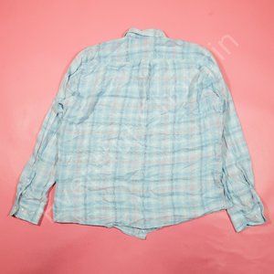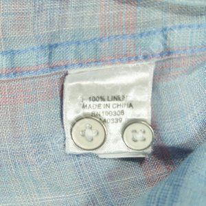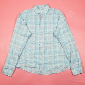 Peter Millar Shirt Mens Size XL Blue Plaid Linen Crystal Beach Button Down