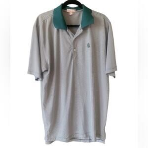 Peter Millar Summer Comfort XL Emerald Green & White Striped Casual Golf Polo. Embroidered crest. 100% polyester.