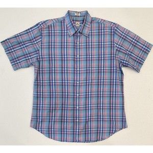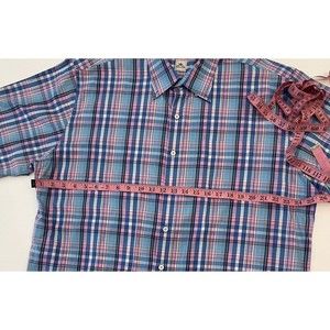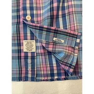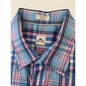 Peter Millar Shirt Mens XL Blue Pink Plaid Pocket Casual
