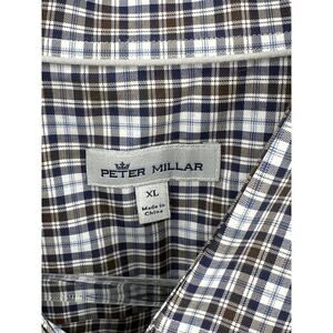 Peter Millar Shirt Mens XL Brown Navy Plaid Button Up Long Sleeves Casual Preppy