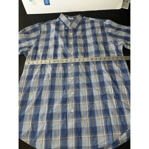Peter Millar Shirt Mens XL Button Front Down Short Sleeve Blue Plaid