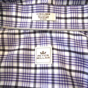Peter Millar Shirt Mens XL Long Sleeve Button Purple Stipe Check Cotton Casual