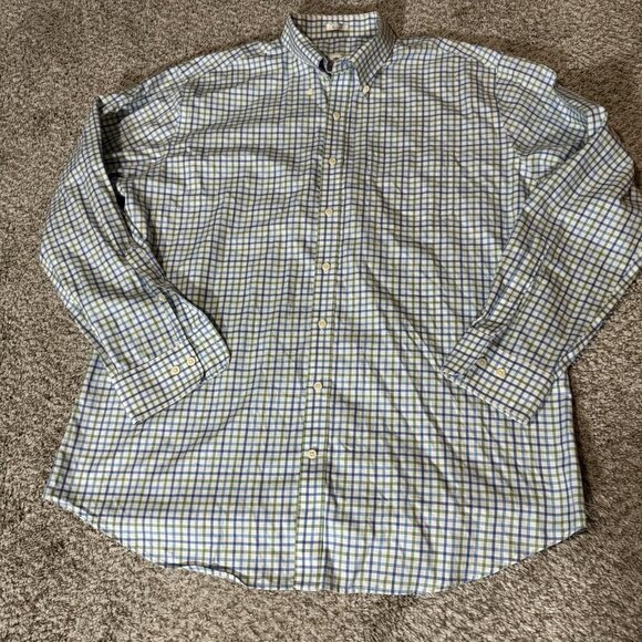 Peter Millar Shirt Mens XL Nanoluxe Blue Green White Plaid Cotton Dress