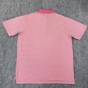 Peter Millar Shirt Mens XL Pink White Striped Polo Short Sleeve Performance Bull