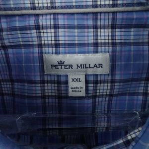Peter Millar Shirt Mens XXL Blue Plaid Crown Finish Business Office Lightweight