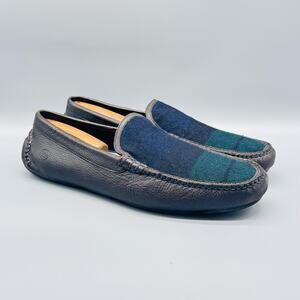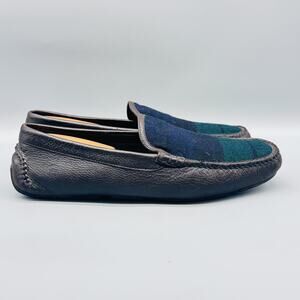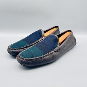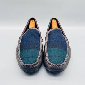 Peter Millar Shoes Mens 11 Brown Leather Driving Loafer Watch Wool Holiday Plaid