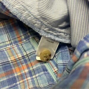 Peter Millar Shorts 100% Linen Checkered Blue Orange White Mens Size 36