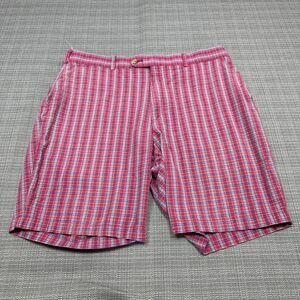 Peter Millar Shorts Mens 36 Pink Blue Seersucker Textured Golf Casual Preppy