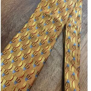 Peter Millar Silk Tie Geometric Pattern Yellow Gold Blue
