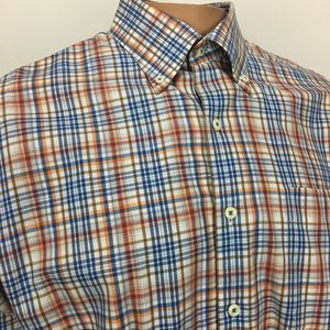 Peter Millar Large Blue/Red/ Orange Plaid Long Sleeve Shirt