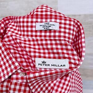 Peter Millar Stretch Twill Sport Shirt Red White Gingham Cotton Mens Large