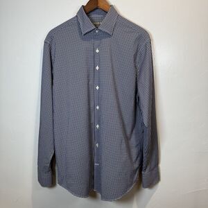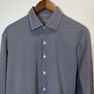Peter Millar Summer Comfort Blue Gingham Men's Shirt Size Large Preppy