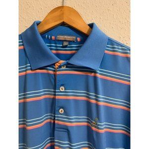 Peter Millar Summer Comfort Blue Striped Polo Golf Shirt Mens Size Large