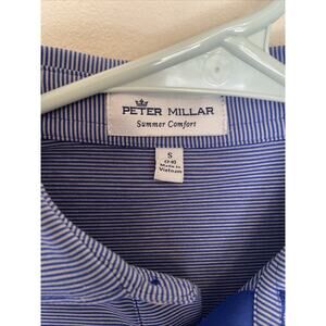Peter Millar Summer Comfort Blue Striped Southern Hills Golf Polo Shirt Youth S