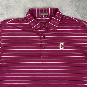 Peter Millar Summer Comfort Golf Performance Mens Pink Striped Polo Shirt Large