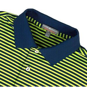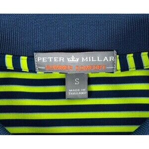 Peter Millar Summer Comfort Golf Performance Polo Striped Green Navy Mens Size Small.