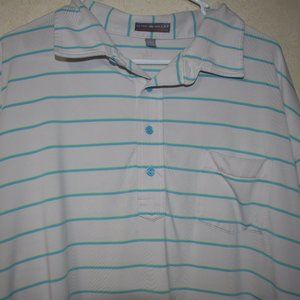 Pre-Owned Peter Millar Summer Comfort Golf Polo White with Blue/Green Striped XXL. Short Sleeve White Shirt With Green and Blue Stripes. 92% Polyester & 8% Spandex Collared with Neck Button Up.