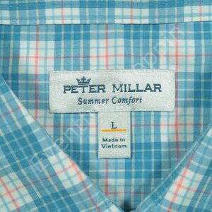 Peter Millar Summer Comfort Manufacturers Golf CC Mens L Blue Plaid Button Down