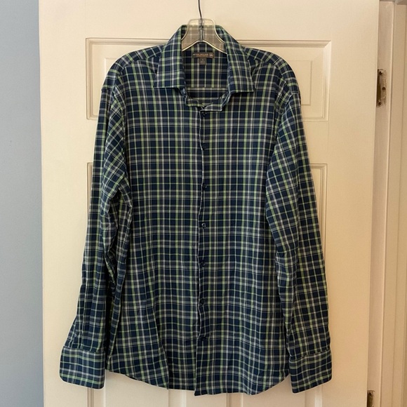 Peter Millar Summer Comfort Men’s Button Up Shirt Blue Plaid Long Sleeve Size L