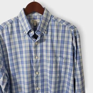 Peter Millar Summer Comfort Mens Performance Button Down Shirt Blue Plaid Sz Med