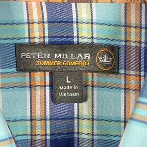 Peter Millar Summer Comfort Mens Plaid Long-Sleeve Button-Up Shirt L Blue/Orange