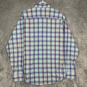 Peter Millar Summer Comfort Mens Plaid Long-Sleeve Button-Up Shirt L Blue/Orange
