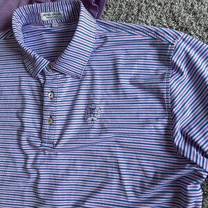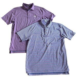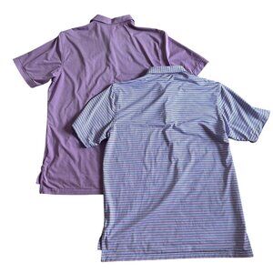 Peter Millar Summer Comfort Mens Sz M Polo Shirt Lot Of 2 Purple Solid & Striped