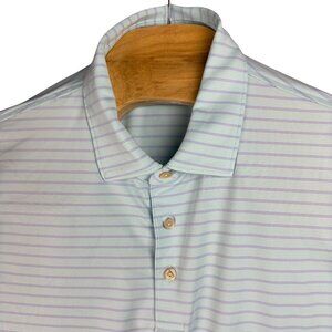 Peter Millar Summer Comfort Polo Shirt Men L Light Blue Striped Adcock Fin.Group