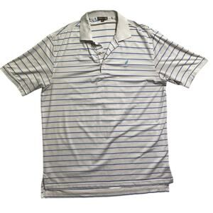 Peter Millar Summer Comfort Polo Shirt Mens Large Blue White Performance Golf