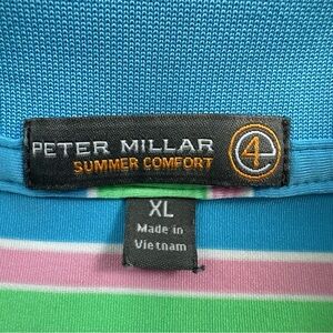 Peter Millar Summer Comfort Polo Shirt Men’s XL Short Sleeve Blue Green Striped