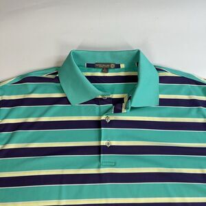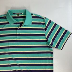 Peter Millar Summer Comfort Polo Shirt Mens XL Turquoise Striped Golf Preppy