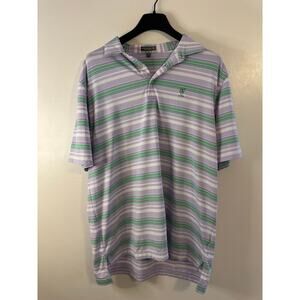 Peter Millar Summer Comfort Purple Green Stripe Golf Cooling Polo Size XL