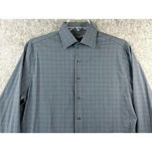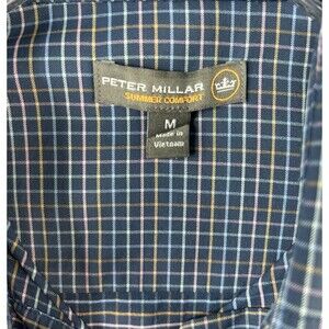 Peter Millar Summer Comfort Shirt Men's Blue Check Long Sleeve Stretch Medium