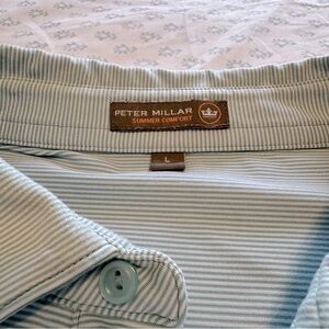 Peter Millar Summer Comfort Soft Blue Striped Polo Shirt Size Large