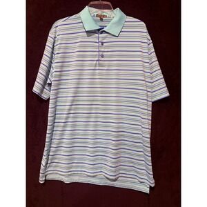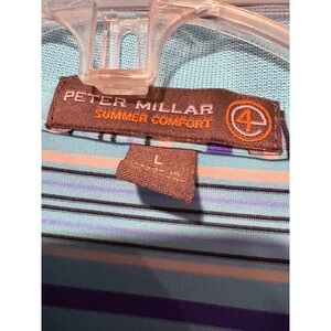 Peter Millar Summer Comfort Striped Golf Polo Shirt Stretch Blue Purple L