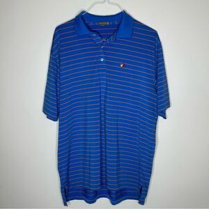 Peter Millar Summer Comfort XL Short Sleeve Blue and Orange Striped Golf Polo