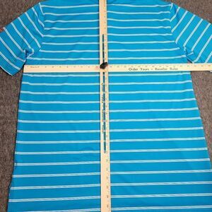 Peter Millar Summer Comfort Mens Size L Golf Polo Shirt Striped Aqua Blue New Condition Come With Original Tag See Pictures For More Details.