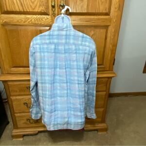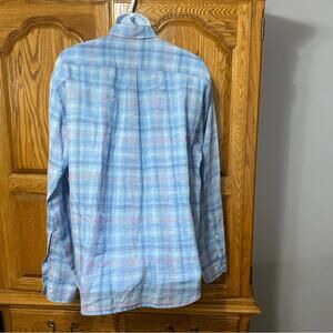 Peter Millar Summer Sky Crystal Beach Linen Sport Shirt Button Down Blue Mens Size Large in gently used condition. Smoke and pet free home.