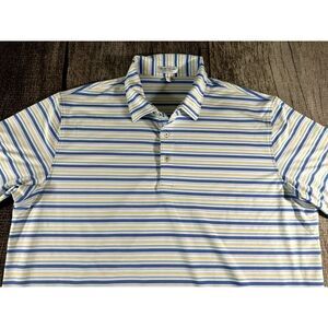 Peter Millar Summer Comfort Kissing Camels Striped Polo White Blue Polo Shirt XL