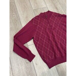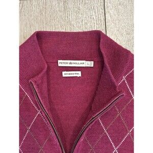 Peter Millar Sweater Mens L Red Argyle 1/4 Zip Pullover Merino Wool Preppy Golf
