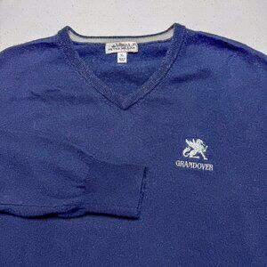 Up for sale is a Peter Millar Sweater Mens XL Blue Wool Silk Blend Grandover Resort Golf Preppy. The Grandover Spa & Resort is located in Greensboro, NC. It is gently used and in good shape with no visible issues observed other than a name written on the interior tag - check out the pics for details.