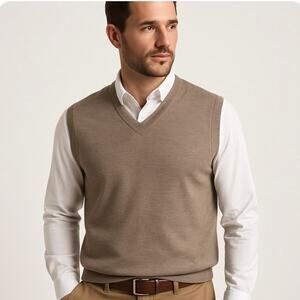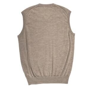Peter Millar Sweater Vest Medium Tan 100% Merino Wool V-Neck Pullover Golf