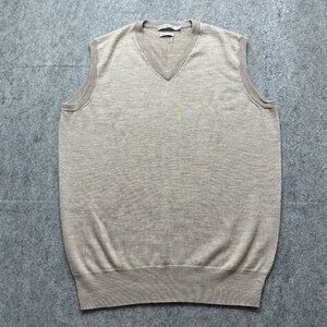Peter Millar Sweater Vest Men M Beige Merino Wool V-Neck Jumper